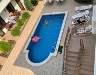 Гости имеют возможность поплавать в открытом бассейне, вокруг которого располагаются шезлонги для загара. Ближайший пляж мелко-галечный, полностью оборудованный для отдыха приезжих. На берегу есть раздевалки, навесы и зонты от солнца, а также развлекательные объекты и точки питания.