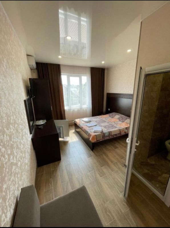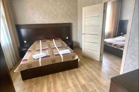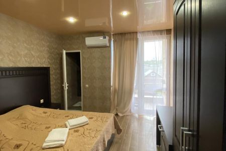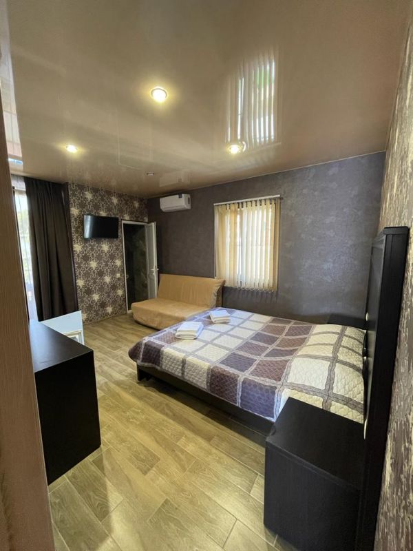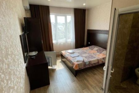 Номера располагаются в 3-этажном корпусе. В каждом номере имеется телевизор с широким выбором каналов, кондиционер, холодильник и собственная ванная комната с душем. Все номера имеют удобную мягкую мебель. Гостям также доступна общая кухня, оснащенная необходимой бытовой техникой и набором посуды. На территории гостевого дома обустроена мангальная зона.
